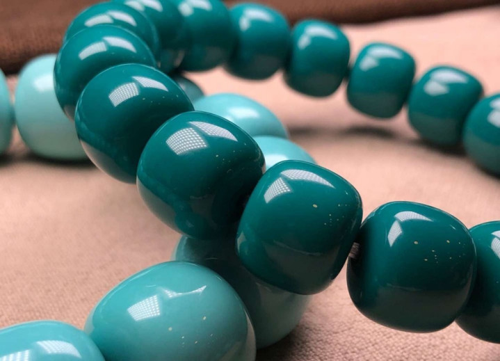 油脂的 “固化” 作用:汗液中的油脂因素会在孔隙名义变成一层薄薄的保护膜,减少水分快速挥发,让颜料相识在温润情状,这即是 “包浆” 的执行。这种变色时时是均匀的,且不成逆(除非永恒脱水),是绿松石 “越盘越润” 的原因。