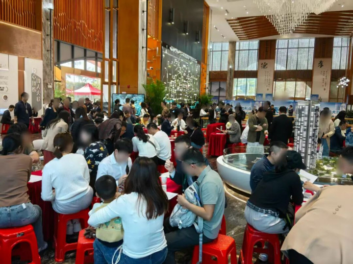 从早上开门到晚上收客,来访一波接一波。从门口就启动排起队,中介谈话说到嗓子哑,沙盘前水泄欠亨。最终单日成交蹂躏60多套。