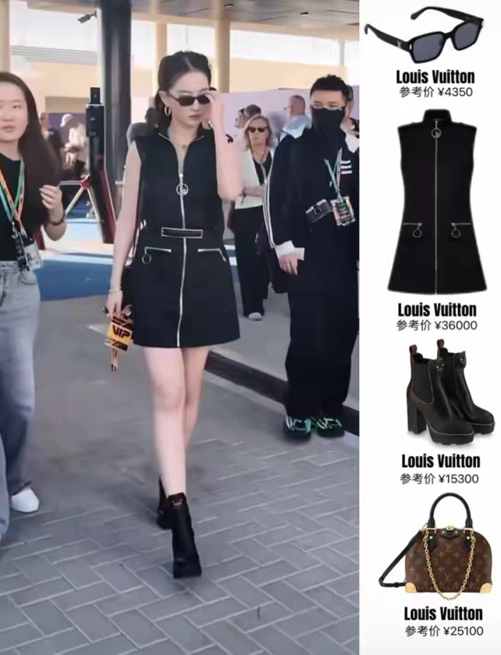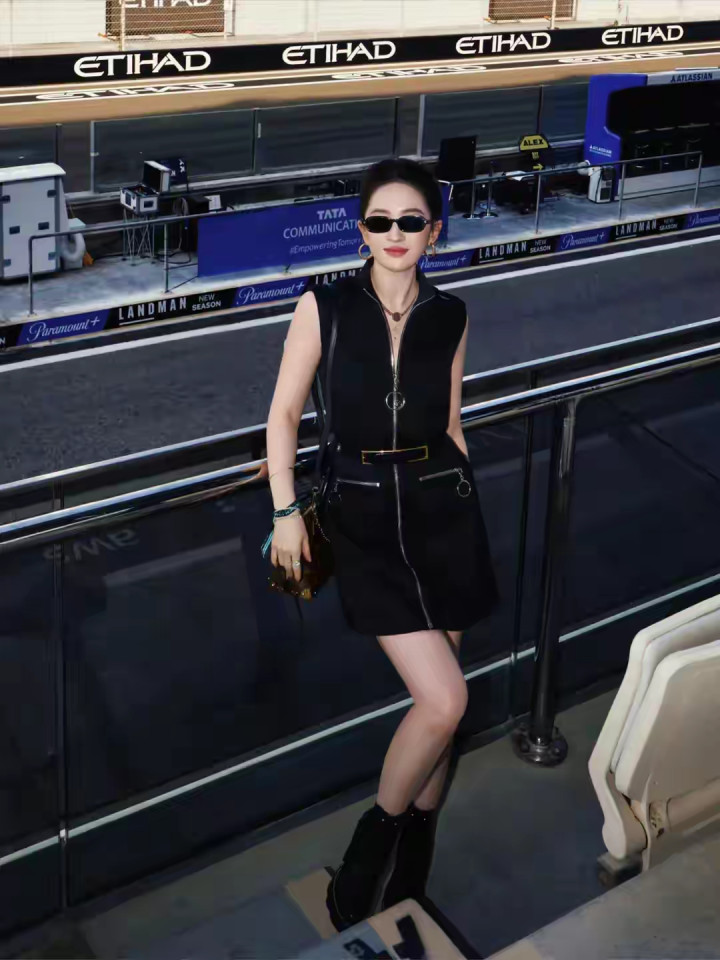 近日,刘亦菲现身阿布扎比看F1。她扎高马尾,身着LV黑裙,戴18K金饰,行头约40万,尽权贵气俏皮。